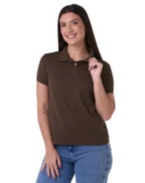 Camisa Polo Piquet Feminina Marrom