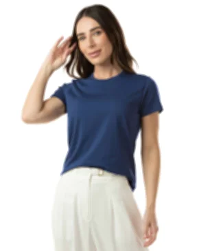 Camiseta de Algodão Egípcio Feminina Azul Índigo