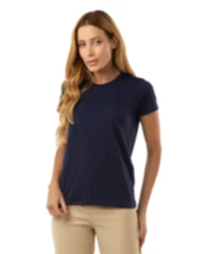 Camiseta de Algodão Egípcio Feminina Azul Marinho