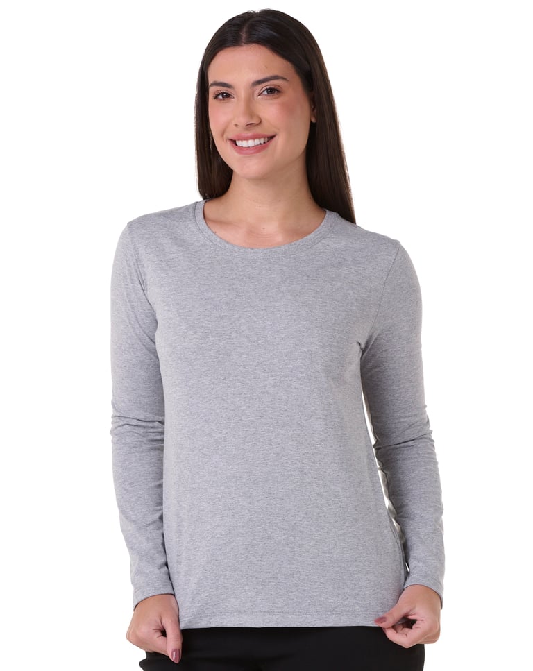 Confeccionada em malha 100% algodão fio 30.1 Penteado, esta camiseta de manga longa feminina oferece um toque excepcionalmente macio e conforto para o dia a dia. Sua alta durabilidade assegura que a peça mantenha sua qualidade e aparência impecáveis por muito tempo.