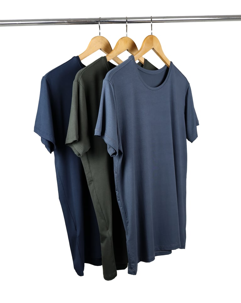 Esse kit é composto por 3 Camisetas Tech Modal Masculinas nas cores: Preto, Off White e Verde Militar.