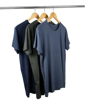 Esse kit é composto por 3 Camisetas Tech Modal Masculinas nas cores: Azul Marinho, Cinza Chumbo e Verde Militar.